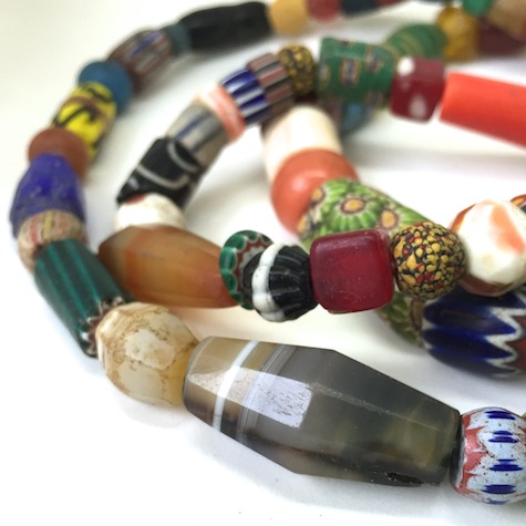 Mixed trade beads strand with Idar-Oberstein beads